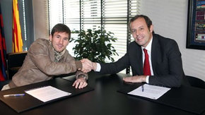 Tras el amistoso disputado en la pasada jornada con su selección, Leo llegó a las oficinas del club acompañado de su padre, para sellar el contrato que lo vincula al equipo blaugrana hasta 2018, dos años más de lo que figuraba en el vigente hasta la pasada jornada.
