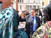Nicolás Sarkozy saluda en un refugio para mujeres el pasado abril.