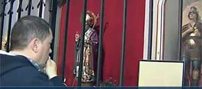 El responsable del centro religioso apunta que desde el comienzo de la crisis en 2008 la gente ha acudido más a rezar y se ve la labor de la encargada de pasar las peticiones de los creyentes por el cuerpo del santo, el cual, ha sido "rebautizado como el santo de la crisis".