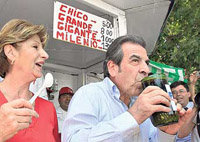 | En Santiago. Eduardo Frei –candidato oficialista- y su esposa Marta saborean el popular ‘mote con huesillo’ en una calurosa jornada veraniega durante la pasada campaña política |