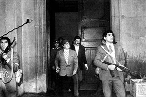 | La ultima foto de Allende lo muestra acompañado de sus escoltas personales, el llamado GAP |