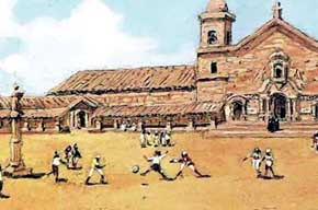 Según este documental, los nativos guaraníes usaban el caucho para hacer pelotas de goma a las que llamaban mangá. “En la Plaza de Armas, terminaban la doctrina y hacían una rueda y se pasaban la pelota con los pies, pero el partido siempre terminaba cero a cero porque no había aro”. En el libro ‘Tesoro de la lengua guaraní’, impreso en Madrid en 1639, se habla de jugar con los pies con pelotas.