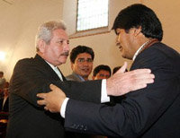 | | El presidente de Bolivia, Evo Morales (d) y el gobernador opositor de Santa Cruz, Rubén Costas
