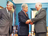 | Piñera junto a los expresidentes Aylwin (i) y Lagos (d)