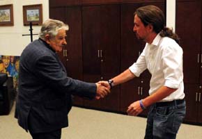 Para el cabeza de la formación "es un claro síntoma de que vivimos en tiempos de crisis democrática que sorprenda que un presidente viva como los ciudadanos que le han elegido”, y valoró al presidente de Uruguay como un “ejemplo de decencia, virtud cívica y compromiso con los más necesitados”. Por su parte, el presidente uruguayo manifestó al partido asambleario su esperanza en el cambio político en Europa.