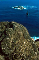 | Un petroglifo en la aldea ceremonial de Orongo en Isla de Pascua |
