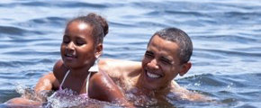 La Casa Blanca difundió imágenes del mandatario nadando este sábado en la costa de Panama City Beach, en el estado de Florida, junto con su hija Sasha. La familia presidencial escogió la costa de Florida para sus vacaciones con el objetivo de promover el turismo en la zona después de la catástrofe provocada por el hundimiento de una plataforma petrolera en el golfo de México.