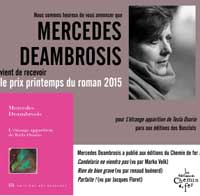 La escritora hispano francesa Mercedes Deambrosis ha sido la ganadora en Francia del premio Primavera de Novela 2015, por su libro L´etrange apparition de Tecla Osorio La extraña aparición de Tecla Osorio.