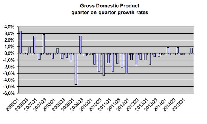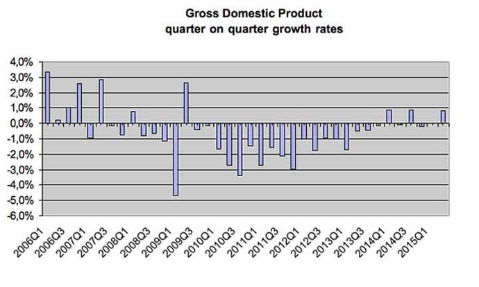 El PIB fue estable en el primer trimestre, tras haber retrocedido 0,2% en el cuarto de 2014, según ELSTAT.
