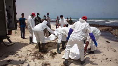 En la víspera, los socorristas de la Media Luna Roja Libia pasaron el día recogiendo cadáveres que eran arrojados por el mar en las playas de la ciudad de Zuwarah.