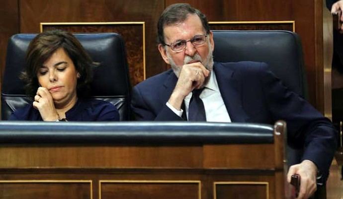 Mariano Rajoy bosteza y Soraya Sáenz de Santamaría habla por teléfono durante la intervención de Irene Montero en el debate de la moción de censura MARTA JARA