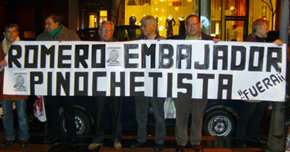 Bajo el cántico festivo “viejito pascuero (papa Noel), llévate a Romero”, exigieron que el gobierno español retire el plácet al actual embajador, al que acusan de estar comprometido directamente con la dictadura criminal de Augusto Pinochet. (1973-1990).