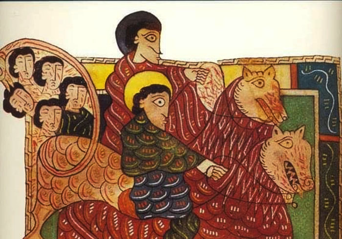Esta misma similitud se puede ver en el estilo románico en general, en los Beatos -libros iluminados sobre el Apocalipsis en los monasterios medievales de España- y en los retratos y autorretratos de Pablo Picasso, que se inspiró, según apuntan numerosos historiadores en los citados Beatos.