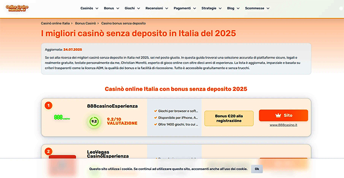 Este portal italiano se ha posicionado como un recurso valioso para jugadores que buscan casinos online seguros. Los usuarios valoran especialmente sus reseñas detalladas que destacan tanto fortalezas como limitaciones de cada operador.