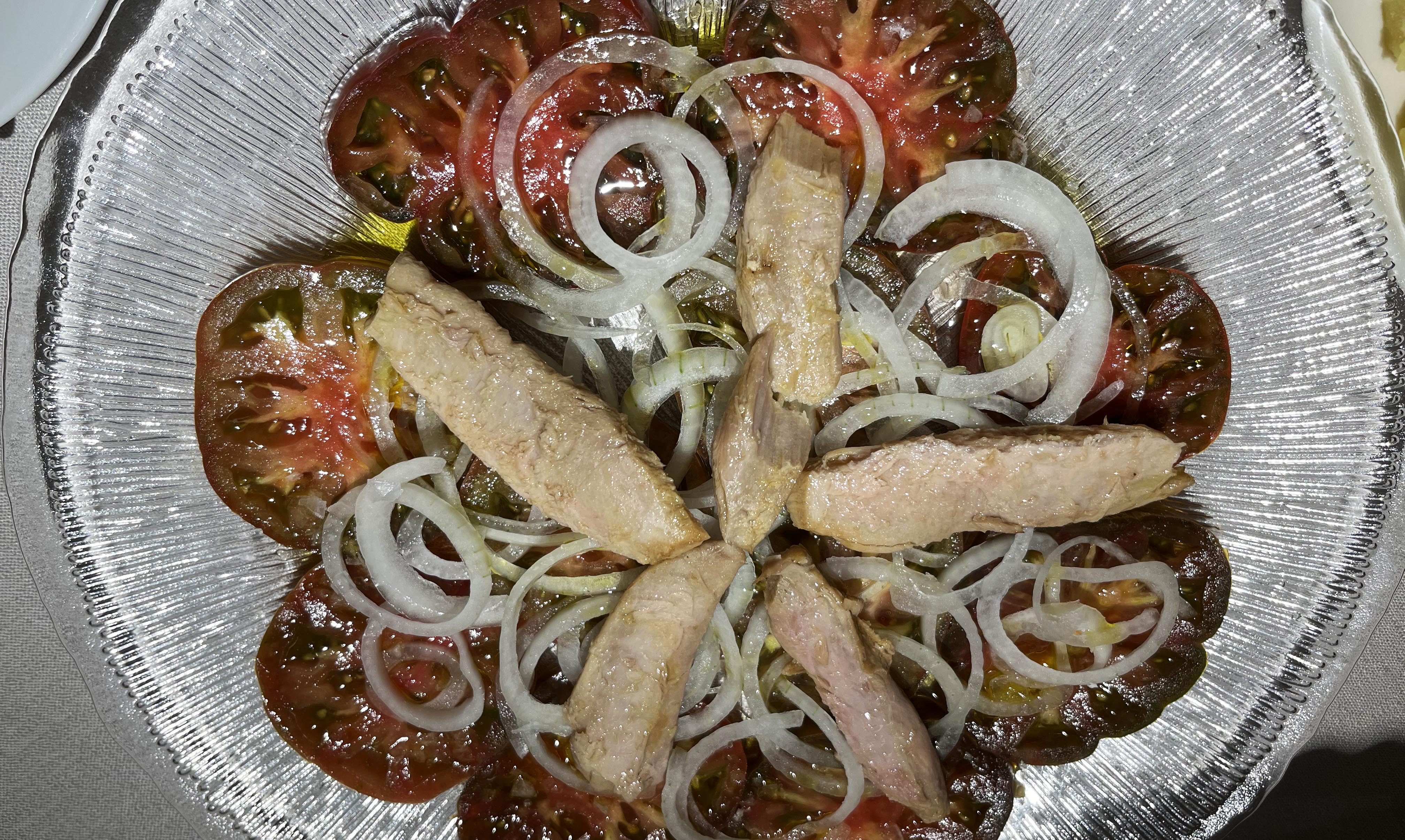 La visita a El Espigón es una fiesta de sabores. “Donde el mar se sienta a la mesa.” Como ejemplo de su cocina, pudimos deleitar, un salmorejo de delicada textura y un aceite de oliva de primerísima calidad, seguido de un tomate con ventresca y aros de cebolla con un sabor natural y profundo, alejado de los habituales. La fritura de boquerón y unos salmonetes llegaron a la mesa en su punto perfecto, jugosos y con el auténtico sabor a mar.