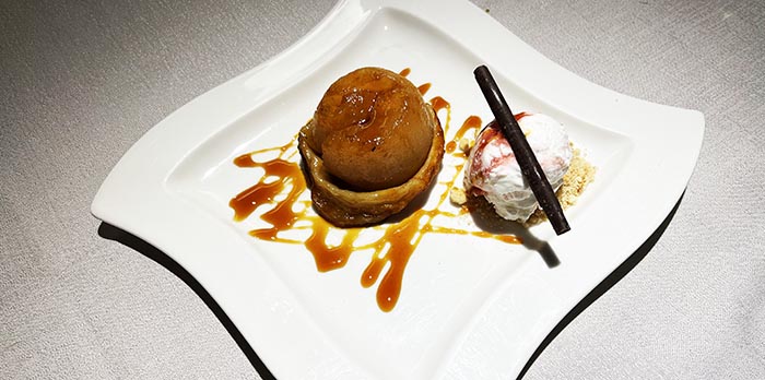 El plato fuerte, una espectacular ventresca de corvina a la bilbaína, fue una muestra de técnica y respeto por el producto. Para cerrar esta copiosa y deliciosa comida, el postre puso el broche de oro: un original Tatin de pera con helado de yogur, con la cocción de la pera al dente, demostrando la perfecta combinación de ingredientes. Todo ello regado por un Verdejo de José Pariente, jugoso y discreto, el acompañamiento ideal.