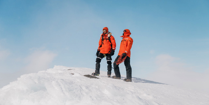 La Arctic Patrol Down Parka de Helly Hansen nace precisamente de este conocimiento histórico aplicado al presente. La marca noruega colaboró con científicos de The Greenland Project, quienes enfrentan el mismo dilema que Shackleton: permanecer inmóviles durante horas tomando mediciones sobre el hielo, mientras el termómetro marca 30 grados bajo cero.