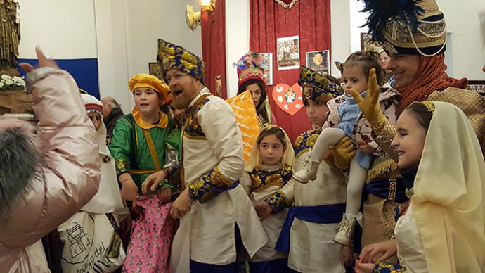 La figura del Gran Visir de la Cabalgata, representada con cercanía y sensibilidad por D. Salvador Fernández, director de la Cámara de Comercio de Sevilla, protagonizó un encuentro especialmente significativo con los niños y niñas más desfavorecidos del entorno. Su presencia, marcada por la atención personal y el trato afectuoso, permitió que muchos menores pudieran vivir de manera directa la ilusión de entregar sus cartas y recibir, en ese gesto simbólico, una respuesta cargada de afecto.