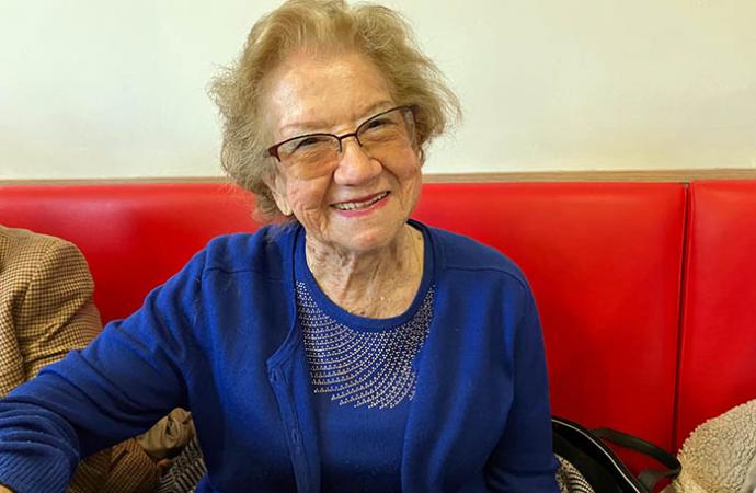 31ENE26 – MADRID.- Paquita Flores (1946), miembro del Grupo “Misa de 10 en el Caldeiro”, cumpl 90 años, este 24 de enero de 3026, en el barrio La Guindalera del distrito de Salamanca. La vida de Paquita Flores no fue precisamente la de “profesión: Sus Labores”, como se rellenaba antes el DNI de las mujeres, sino de empresaria, pues se quedó viuda muy pronto, con un niño de 5 años, el menor, además de dos gemelos y el mayor, Feliciano Jiménez, que estuvo en la celebración del Grupo. “Sólo tuve varones”, explica ella.
