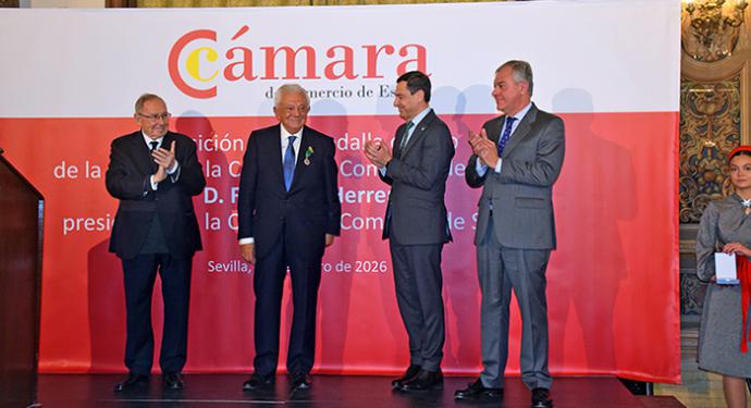 El acto de entrega tuvo lugar en el emblemático Hotel Alfonso XIII de Sevilla y contó con la presencia de destacadas autoridades y representantes institucionales, entre ellos el presidente de la Junta de Andalucía, Juan Manuel Moreno Bonilla; el alcalde de Sevilla, José Luis Sanz; y el propio presidente de la Cámara de Comercio de España, José Luis Bonet, así como numerosos representantes del tejido empresarial sevillano, que quisieron acompañar a Francisco Herrero en este reconocimiento a su trayectoria y compromiso con el desarrollo económico y empresarial.