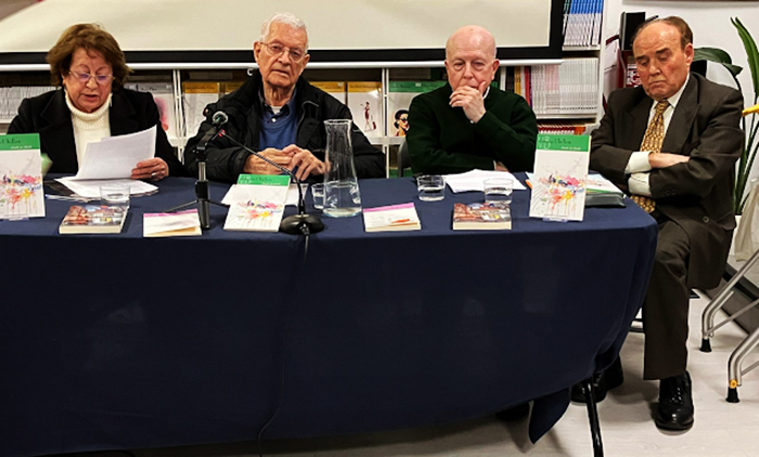 Javier Lostalé, poeta, elogió la venta de libros por librerías, más que por Internet antes de comentar la obra de Ubillos en la que “la memoria es fundamental, fecundada por lecturas de Unamuno, Camus, Pascal…” La comedia “Cheek to cheek es también teatro para ser leído y no solo representado. Teatro de lenguaje con seis protagonistas, en donde se aborda el amor de pareja, la soledad, el amor en Oriente y Occidente…” “Una creación literaria con la verdad de las mentiras, al decir de Vargas Llosa. “Dios es amigo del hombre”, se dice, porque Germán es un ser religioso. “La música con su carácter simbólico y poético es una radiografía de las almas”. Las acotaciones de “Cheek to cheek” también cobran un interesante valor literario.