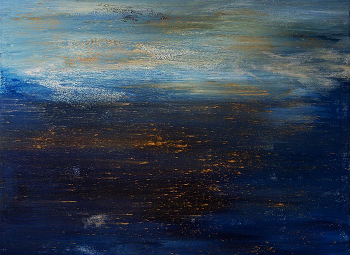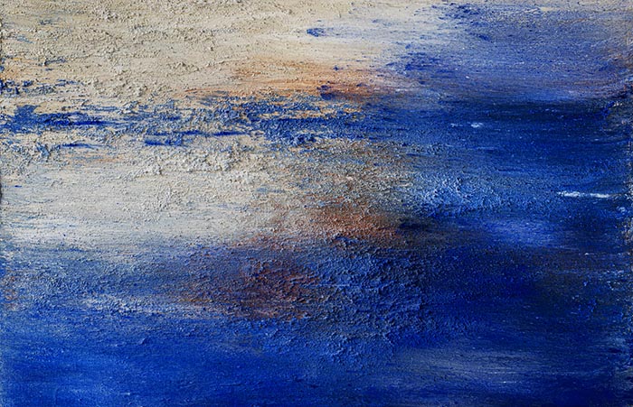 La luz actúa como un elemento transformador, esculpiendo el color y revelando texturas, zonas de silencio y áreas de mayor intensidad visual. Azules, blancos, dorados y rojos aparecen como campos inestables, en constante mutación. La mirada es invitada a una observación lenta, basada en acercamientos y distancias.