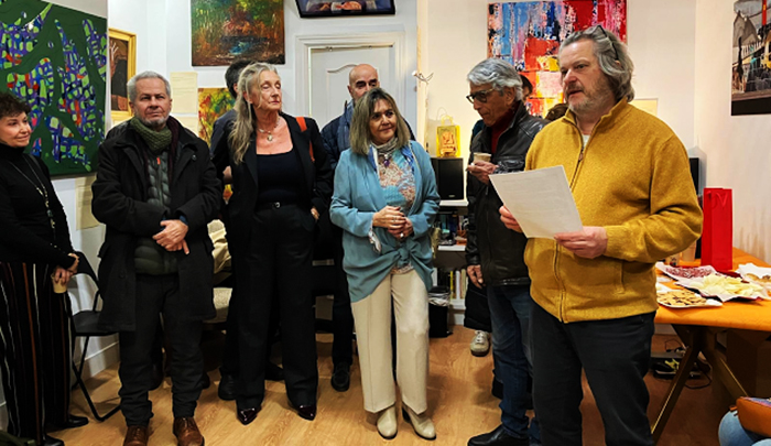 A invitación de Fiorentini, director de la galería, que abrió el acto hablando de arte y ciencia, varios de los artistas comentaron su obra en voz alta, en relación al párrafo referido a la novela.