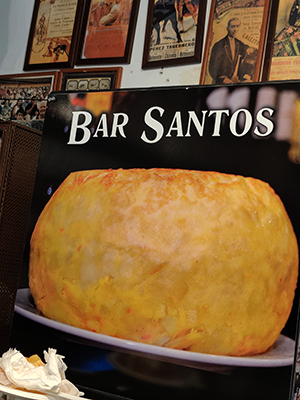 Sí, y allí, en aquel lugar “de los de toda la vida” como se define a sí mismo el Bar Santos, de pocas mesas en el interior, las colas de gente deseando comerse un pincho de tortilla se suceden.