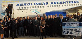 La presidenta argentina Cristina Fernández presidió el acto de entrega de los Boeing 737/700, de un total de doce, adquiridos para la empresa. Es la primera vez en 17 años que Aerolíneas compra aviones nuevos.