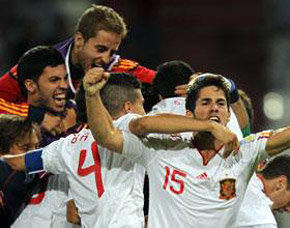 España (7): Pachecho, Mallo, Luna, Bartra, Amat, Oriol, Koke, Canales (Alvaro Vázquez, min. 58), Pacheco (Isco, min. 51), Tello, Rodrigo (Recio, min. 89).