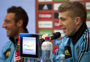 Entrevistado a pie de campo por televisión española, el joven bromeó con Soldado, pero el experiente delantero se negó a cambiarle el balón del hat trick, por las espinilleras de Bart.