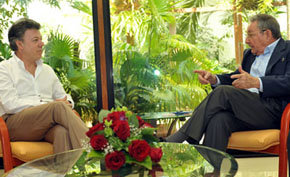 En el primer viaje de un presidente colombiano a la isla en 13 años, Santos se comprometió para que el tema de Cuba se aborde de cara buscar soluciones ante los países miembros de la Organización de Estados Americanos (OEA) convocados a la cumbre.