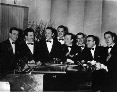 | Astor Piazolla (centro de la imagen) con su famoso “Octeto de Buenos Aires”, en una fotografía de 1956 |